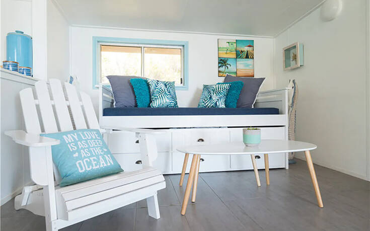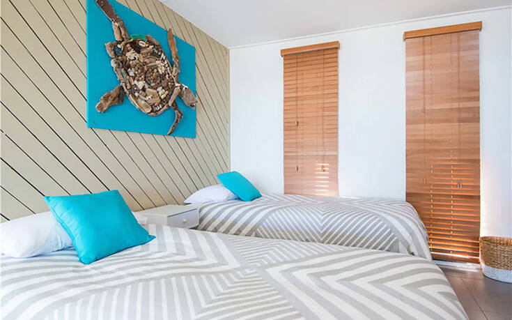 Πέντε ενεργειακά αυτόνομες εξοχικές κατοικίες είναι διασκορπισμένες στο ιδιωτικό νησί των 15 στρεμμάτων, ένα μικρό resort που μπορεί να φιλοξενήσει 34 ανθρώπους σε 9 δωμάτια και βίλες. Και το κάνει αυτό από το 1964.