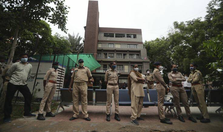 Η Αστυνομία απέτρεψε οργισμένους συγγενείς των θυμάτων να εισέλθουν στο νοσοκομείο Shrey στην μεγαλύτερη πόλη του κρατιδίου Γκουτζαράτ μετά την τραγωδία που, σύμφωνα με τις υπηρεσίες εκτάκτων αναγκών, προκλήθηκε όταν ο προστατευτικός εξοπλισμός ενός μέλος του προσωπικού του νοσοκομείου άρπαξε φωτιά.