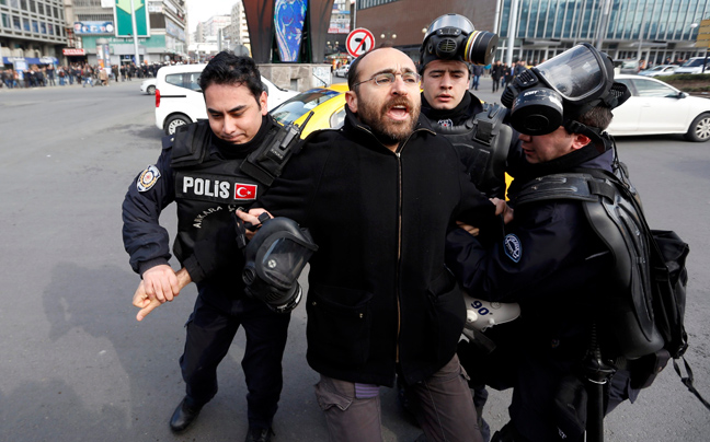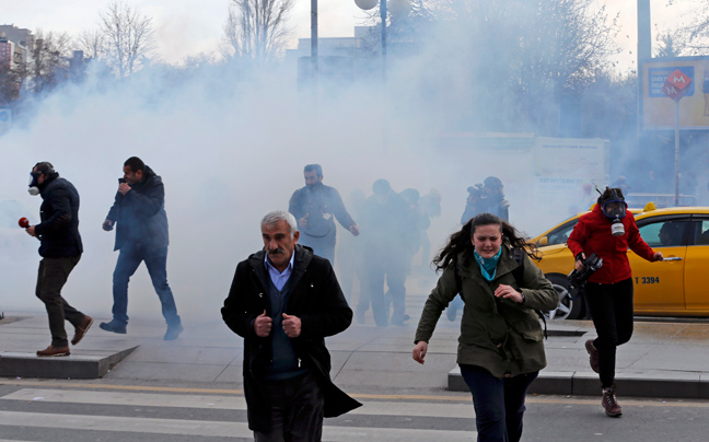 Με χρήση δακρυγόνων και εκτοξευτήρων νερού επιχείρησε η αστυνομία στην Άγκυρα να διαλύσει τους δεκάδες χιλιάδες διαδηλωτές που βγήκαν στους δρόμους και σήμερα, ημέρα της κηδείας του 15χρονου Μπερκίν Ελβάν, που υπέκυψε στα τραύματά του έπειτα από 9μηνη μάχη για τη ζωή.