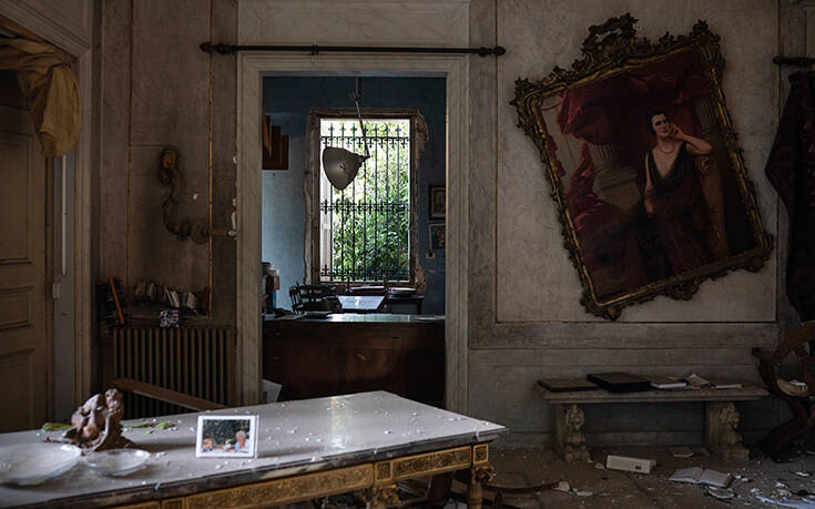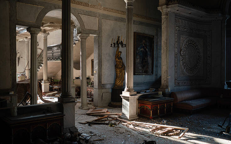 Τώρα, σακιά με συντρίμμια είναι σωριασμένα στην αυλή, στη βάση της μνημειώδους σκάλας όπου οι νεόνυμφοι έρχονταν για να φωτογραφηθούν, με φόντο την κατάλευκη πρόσοψη με τα πολύχρωμα βιτρό.