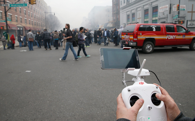 Με το τηλεκατευθυνόμενο αεροπλανάκι του, και το κινητό του τοποθετημένο πάνω σε αυτό, ο Brian Wilson κατέγραψε εικόνες από αέρος από τη μεγάλη καταστροφή στο Χάρλεμ της Νέας Υόρκης, όπου δύο κτήρια ισοπεδώθηκαν μετά την ισχυρή έκρηξη, ενώ ο τελευταίος απολογισμός κάνει λόγο για επτά νεκρούς.