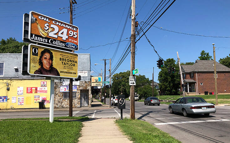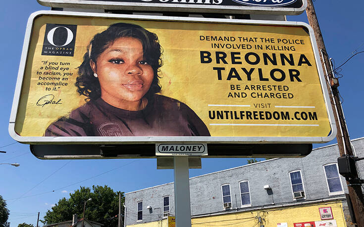 Το βίντεο δείχνει πινακίδες γύρω από το Λούισβιλ που φέρουν το όνομα και το πρόσωπο της Τέιλορ, η οποία έχασε τη ζωή της από πυρά αστυνομικών, όπως αναφέρει το ΑΠΕ.