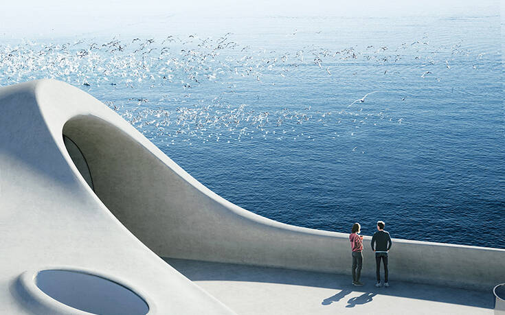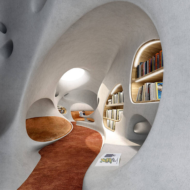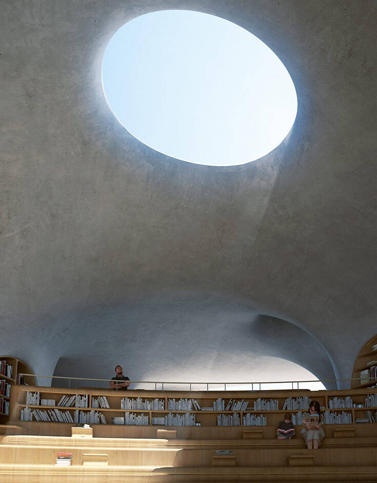 Μια βιβλιοθήκη που προτίθεται «να είναι μια σκουληκότρυπα η οποία υπερβαίνει τον χρόνο και τον χώρο», με θέα τη Θάλασσα της Νότιας Κίνας, σχεδίασε το με έδρα το Πεκίνο αρχιτεκτονικό γραφείο MAD.
