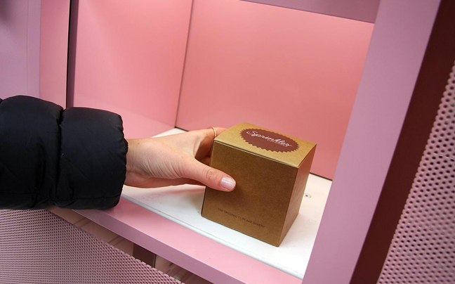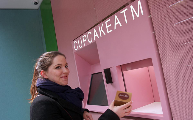 Λιχούδηδες και περίεργοι σχημάτισαν χθες ουρά μπροστά από το μηχάνημα και κανείς δεν έφυγε παραπονεμένος καθώς το ΑΤΜ χωρά 760 cupcakes.