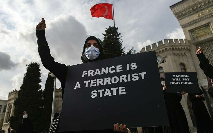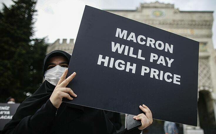 Ο Νουρεντίν Σιρίν, αρχισυντάκτης του τηλεοπτικού δικτύου Kudus (“Ιερουσαλήμ”), δήλωσε ότι «Μακρόν θα πληρώσει ακριβά, τόσο για την αλαζονεία του στην ανατολική Μεσόγειο όσο και για την υποστήριξή του στις προσβολές κατά του Ισλάμ, υπό πρόσχημα της ελευθερίας του Τύπου».