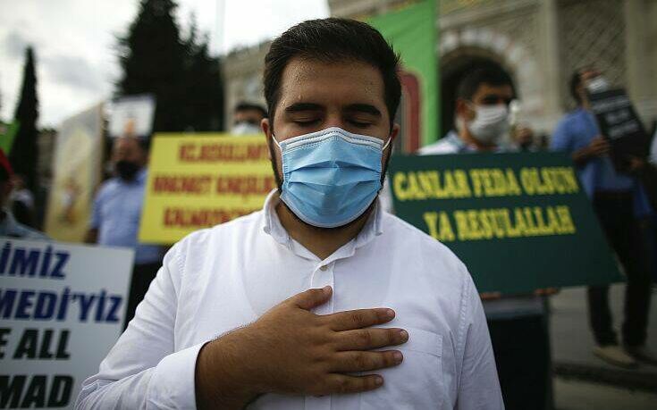 Σχεδόν 200 άνθρωποι διαδήλωσαν σήμερα στους δρόμους της Κωνσταντινούπολης κατά της νέας δημοσίευσης από το γαλλικό περιοδικό Charlie Hebdo σκίτσων του Μωάμεθ.