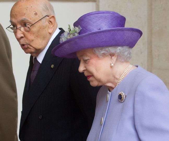 Η βασίλισσα Ελισάβετ αμέσως μετά την άφιξή της στο ιταλικό στρατιωτικό αεροδρόμιο Τσαμπίνο, μετέβη στο Κυρηνάλιο, όπου συναντήθηκε και γευμάτισε με τον Ιταλό πρόεδρο Τζόρτζιο Ναπολιτάνο.