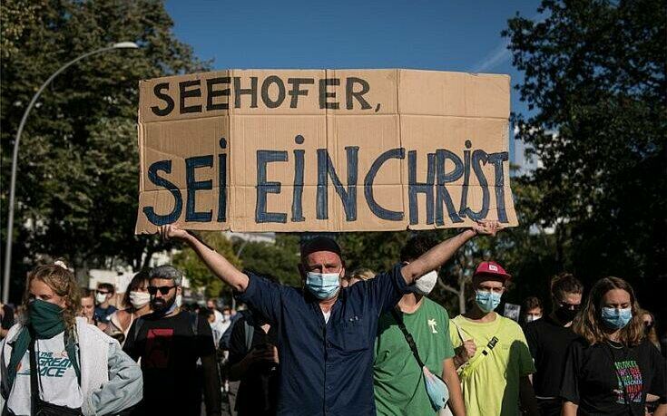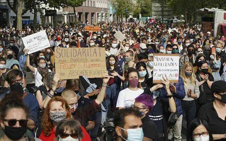 Πολλές χιλιάδες άνθρωποι διαδήλωσαν σήμερα στο Βερολίνο και άλλες πόλεις της Γερμανίας καλώντας την Ευρωπαϊκή Ενωση να υποδεχθεί αιτούντες άσυλο από την Λέσβο μετά την καταστροφή του καταυλισμού στην Μόρια.