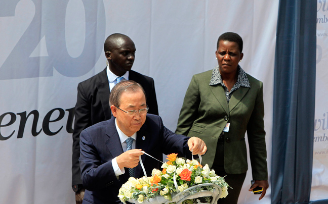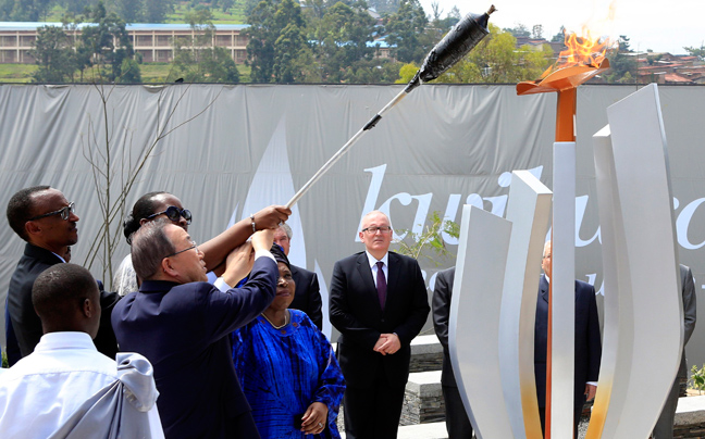 Στην τελετή μνήμης που περιλάμβανε και το άναμμα μιας δάδας, που θα καίει για 100 μέρες, παρευρέθηκε ο γγ του ΟΗΕ Μπαν Κι Μουν.