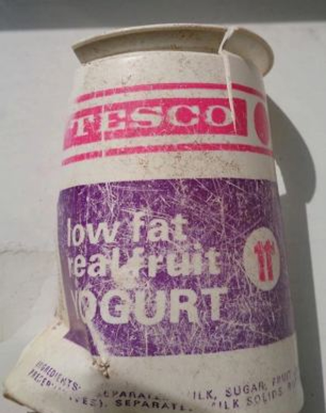 Μια συσκευασία γιαουρτιού από τη… δεκαετία του ’70 μάζεψαν, μεταξύ άλλων, οι εθελοντές που καθάρισαν συνολικά 25 τόνους σκουπίδια από τις βρετανικές ακτές. Ξεβαμμένο, ραγισμένο αλλά κατά τα άλλα άθικτο το μπολ του γιαουρτιού συμβολίζει την κραταιά «κληρονομιά» των απορριμμάτων μας, σημειώνει η Daily Mail.