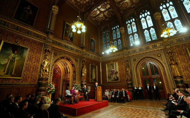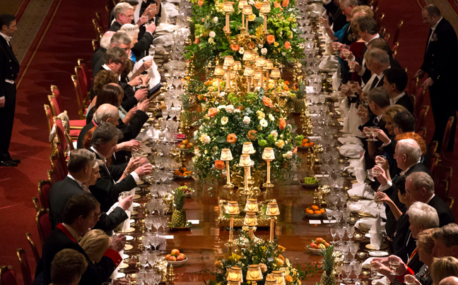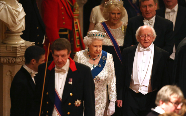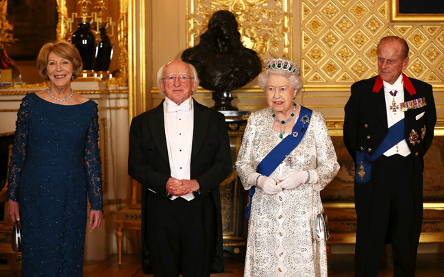 Χθες ο Χίγκινς παραβρέθηκε σε επίσημο δείπνο που παρέθεσε η βασίλισσα Ελισάβετ ενώ παρών ήταν και ο αντιπρόεδρος της κυβέρνησης της Βόρειας Ιρλανδίας Martin McGuinness, πρώην διοικητής του IRA, ο οποίος είχε ανταλλάξει ιστορική χειραψία με την βασίλισσα Ελισάβετ κατά την επίσκεψή της το 2012 στη Βόρεια Ιρλανδία.