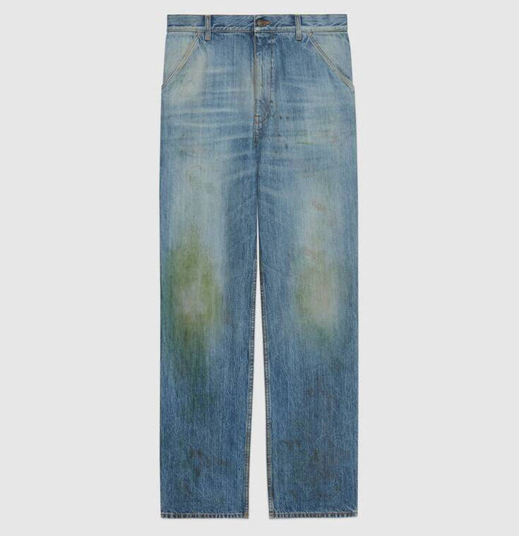 Η Gucci παρουσίασε τη φθινοπωρινή κολεξιόν της και μέσα σε όλα οι περισσότεροι παρατήρησαν ένα τζιν παντελόνι με μεγάλους πράσινους λεκέδες.