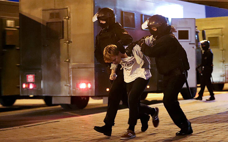 Αστυνομικοί, φορώντας κουκούλες, συνέλαβαν διαδηλωτές και τους μετέφεραν σε κλούβες. Η εκπρόσωπος του Α.Τ. της Εκτελεστικής Επιτροπής της πόλης του Μινσκ, Νατάλια Γκανούσεβιτς, έκανε λόγο στο ρωσικό πρακτορείο Sputnik για τουλάχιστον δέκα συλλήψεις.