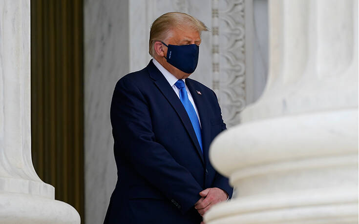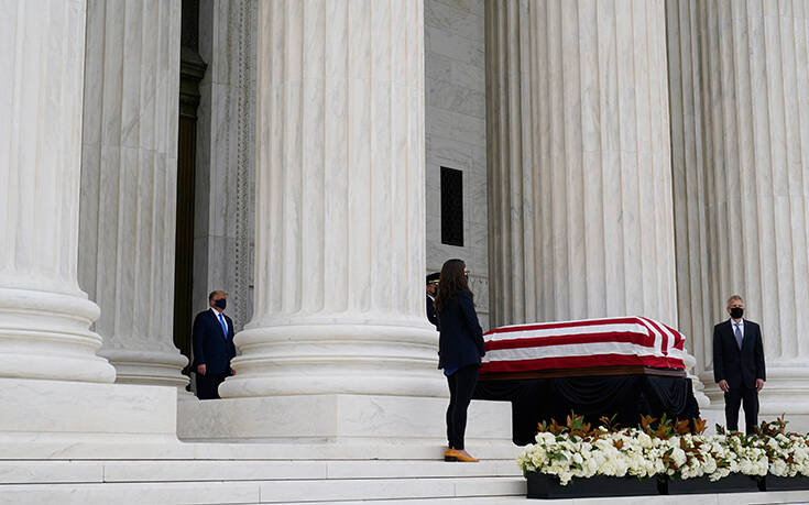 Φορώντας μαύρη μάσκα και συνοδευόμενος από τη σύζυγό του Μελάνια, που ήταν επίσης ντυμένη στα μαύρα, ο Αμερικανός πρόεδρος στάθηκε σιωπηλός για μερικά λεπτά πίσω από το φέρετρο της Γκίνσμπεργκ που ήταν καλυμμένο με την αμερικανική σημαία.