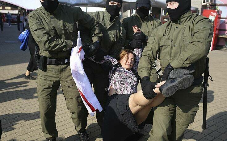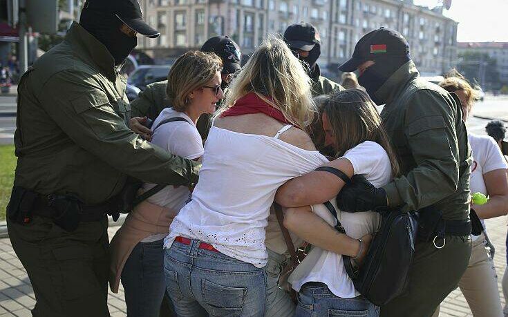 Η οργάνωση ανθρωπίνων δικαιωμάτων Viasna ανέφερε πως τουλάχιστον 10 άνθρωποι συνελήφθησαν, μεταξύ αυτών δημοσιογράφοι. Σε φωτογραφίες που κυκλοφόρησαν διακρίνονται γυναίκες που τις τραβούν από τα χέρια και τα πόδια για να τις οδηγήσουν στα αστυνομικά βαν.