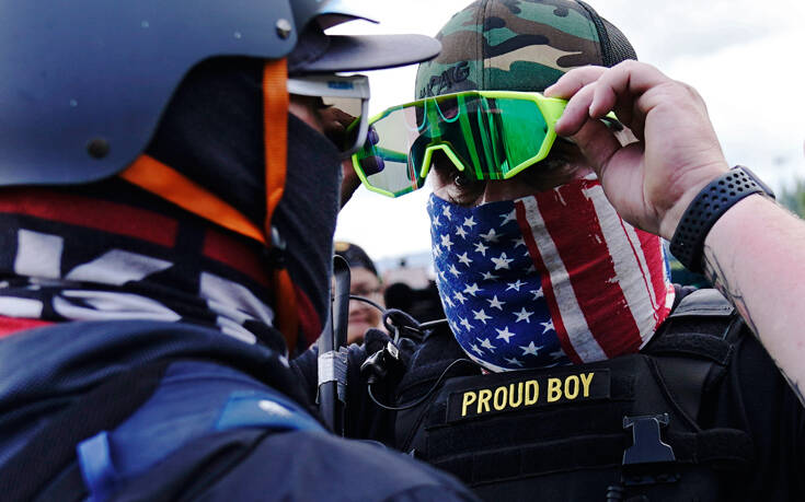 Οι Proud Boys έκαναν συγκέντρωση το Σάββατο στο Πόρτλαντ με τη συμμετοχή 1.000 μελών τους, σε μια προσπάθεια να απαντήσουν στις διαδηλώσεις κατά των φυλετικών διακρίσεων και της αστυνομικής βίας που γίνονταν στην πόλη εδώ και τέσσερις μήνες.