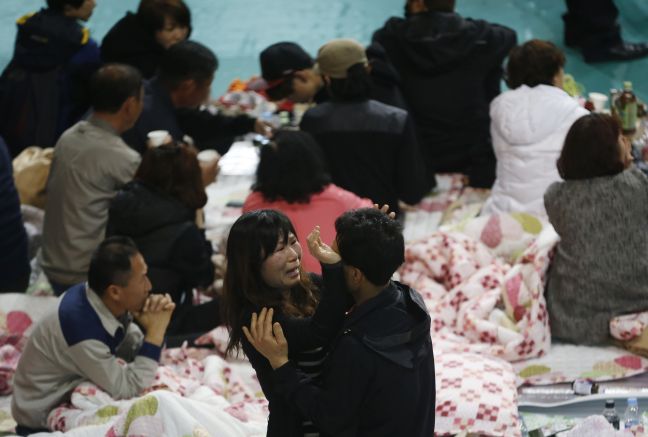 Η νεκρική σιωπή που βασιλεύει στο γυμναστήριο όπου έχουν συγκεντρωθεί οι οικογένειες των αγνοουμένων του ναυαγίου του νοτιοκορεατικού οχηματαγωγού σπάει όταν ανακοινώνεται η ταυτότητα του έκτου διαπιστωμένου νεκρού: είναι μία μαθήτρια του λυκείου και οι γονείς της βγάζουν μία σπαρακτική κραυγή. Η ανακοίνωση έγινε τα ξημερώματα της Πέμπτης, έπειτα από μία νύχτα αγωνίας για τους συγγενείς των αγνοουμένων, πολλοί από τους οποίους είναι οι γονείς των μαθητών που επέβαιναν στο πλοίο που βυθίστηκε ανοικτά των ακτών της Νότιας Κορέας. Το γυμναστήριο του νησιού Τζίντο, κοντά στο τόπο του ναυαγίου, μοιάζει με καταυλισμό προσφύγων. Κάνει κρύο, οι άνθρωποι είναι τυλιγμένοι με κουβέρτες και ορισμένοι, εξαντλημένοι και σε ορισμένες περιπτώσεις χωρίς τις αισθήσεις του από την πολύωρη αγωνία βοηθούνται με ορούς.