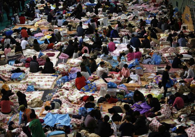 Οι οικογένειες και οι φίλοι των αγνοούμενων είναι συγκεντρωμένοι στην αίθουσα του γυμναστηρίου του σχολείου, όπου μια γιγαντοοθόνη δείχνει απευθείας τις προσπάθειες των σωστικών συνεργείων.