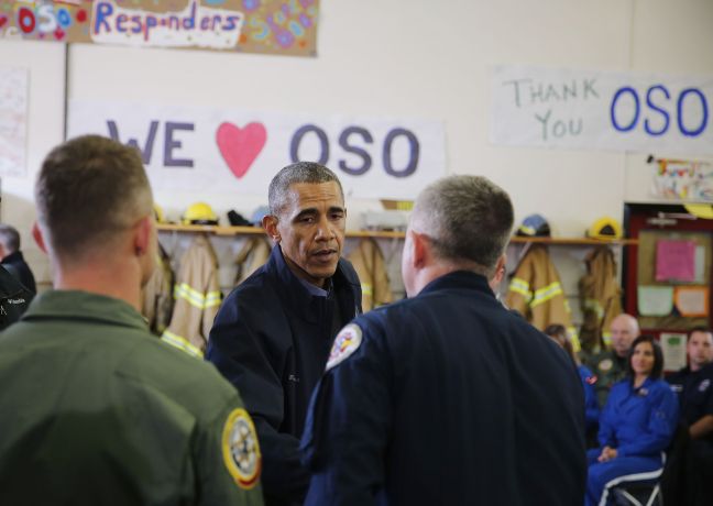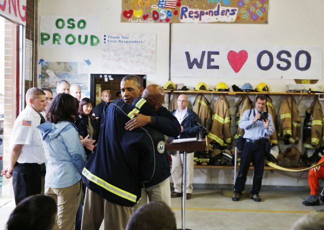 Με τις οικογένειες των θυμάτων της καταστροφικής κατολίσθησης στην κομητεία Σνόχομις συναντήθηκε την Τετάρτη ο αμερικανός πρόεδρος, Μπαράκ Ομπάμα.