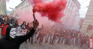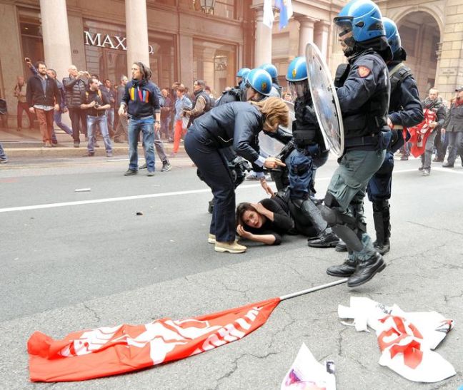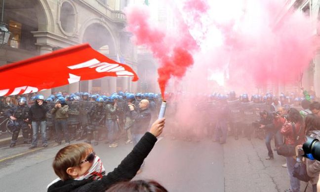 Συγκρούσεις ξέσπασαν ανάμεσα σε αστυνομικούς και εκατοντάδες διαδηλωτές στο Τορίνο, όπου οι διαδηλωτές πέταξαν καπνογόνα στην αστυνομία, η οποία κινήθηκε εναντίον τους, στη βιομηχανική πόλη που πλήττεται ιδιαίτερα από τη διετή ύφεση.