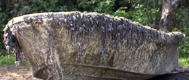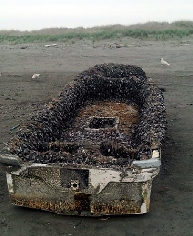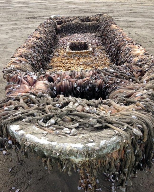 Μια βάρκα που είναι παντελώς καλυμμένη από φύκια, μύδια και διάφορους παράξενους θαλάσσιους οργανισμούς, «ξεβράστηκε» στην παραλία Ocean Lake της Ουάσιγκτον.