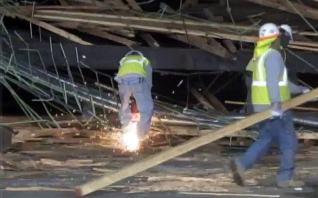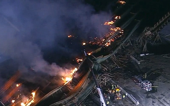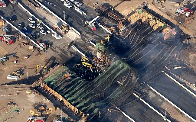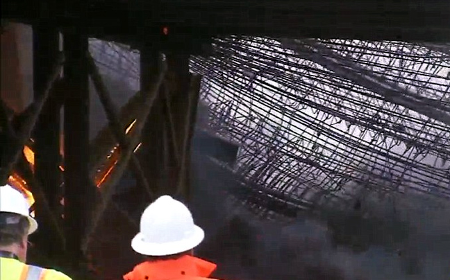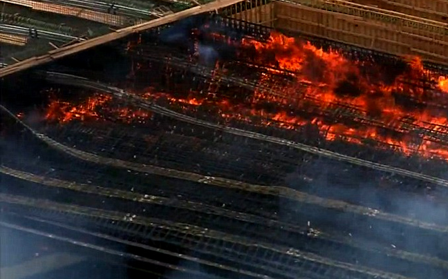 Ύστερα από λίγο ο δρόμος έκλεισε καθώς άρχισαν να πέφτουν κομμάτια της γέφυρας στον αυτοκινητόδρομο, με αποτέλεσμα να προκληθεί κυκλοφοριακό χάος . Η κατασκευή των 32 εκατομμυρίων δολαρίων έγινε ένας σωρός από στάχτη και κομμάτια μετάλλου…