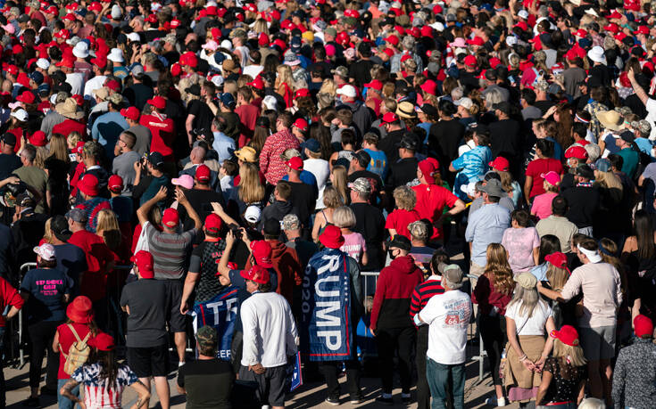 Ο Τραμπ, που διεκδικεί την επανεκλογή του την ερχόμενη Τρίτη, 3 Νοεμβρίου, έδωσε χθες (28/10) συνέχεια στις εμφανίσεις του σε προεκλογικές συγκεντρώσεις, με μαζική συμμετοχή στην Αριζόνα. Παρά τη νέα έξαρση των κρουσμάτων μόλυνσης στη χώρα, δεν έδωσε σημασία στις επικρίσεις για το ότι δίνει την προτεραιότητα στην παραμονή του στην εξουσία, αδιαφορώντας τελείως για την υγεία των υποστηρικτών του, με την εικόνα να μην αλλάζει ούτε αυτήν τη φορά.