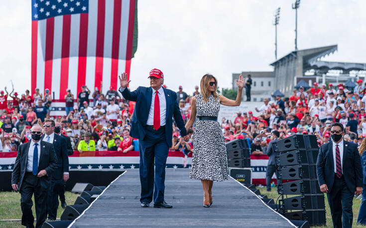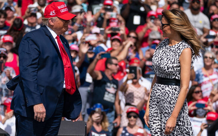 Διαβεβαίωσε εξάλλου τους υποστηρικτές του ότι ακόμα κι αν μολυνθούν, πολύ γρήγορα θα «νιώσουν καλύτερα», επικαλούμενος τη δική του εμπειρία. Συνοδευόταν από τη σύζυγό του Μελάνια, πράγμα σπάνιο, και — πράγμα ακόμα πιο σπάνιο — η πρώτη κυρία έκανε μια σύντομη παρέμβαση, για να πει πως «η ψήφος στον Ντόναλντ Τραμπ είναι ψήφος σε μια καλύτερη Αμερική».