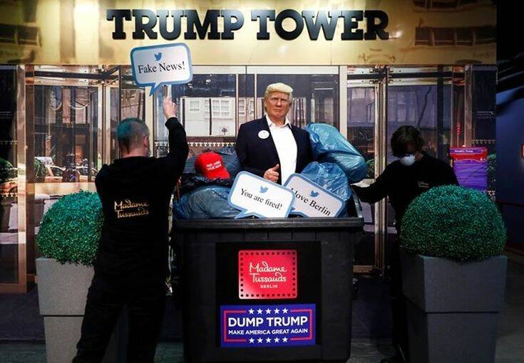 Το μουσείο κέρινων ομοιωμάτων Μαντάμ Τισό του Βερολίνου πέταξε στον κάδο των απορριμμάτων το ομοίωμα του επιχειρηματία-τηλεοπτικού σταρ που έγινε πρόεδρος των ΗΠΑ, του Ντόναλντ Τραμπ, μια κίνηση που προφανώς αντικατοπτρίζει τις προσδοκίες του ενόψει των προεδρικών εκλογών της επόμενης Τρίτης.