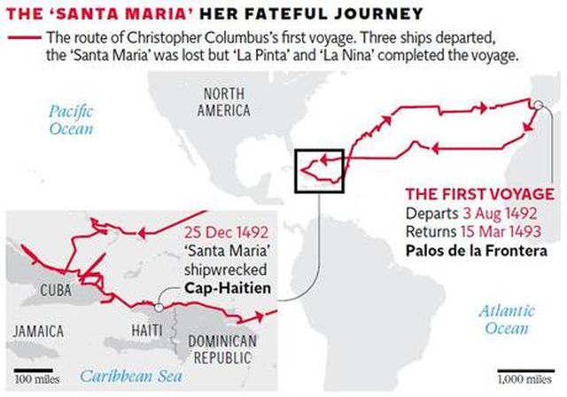 Ερείπια του πλοίου «Σάντα Μαρία» του Χριστόφορου Κολόμβου υποστηρίζουν πως έχουν βρει αρχαιολόγοι στο βυθό της θάλασσας στα ανοιχτά της βόρειας ακτής της Αϊτής. Η νέα ανακάλυψη, που έρχεται περίπου 500 χρόνια μετά το ναυάγιο του διάσημου πλοίου, θεωρείται πολύ πιθανόν να αποτελεί ένα από τα σημαντικότερα υποβρύχια αρχαιολογικά ευρήματα του κόσμου.