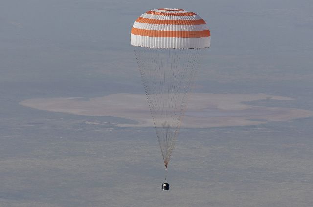 Στη στέπα του Καζακστάν προσγειώθηκε πριν λίγο η διαστημική κάψουλα Σογιούζ μεταφέροντας τριμελές πλήρωμα από την Ιαπωνία, τις ΗΠΑ και τη Ρωσία, που ολοκλήρωσαν τη διαμονή τους, διάρκειας 188 ημερών, στον Διεθνή Διαστημικό Σταθμό.