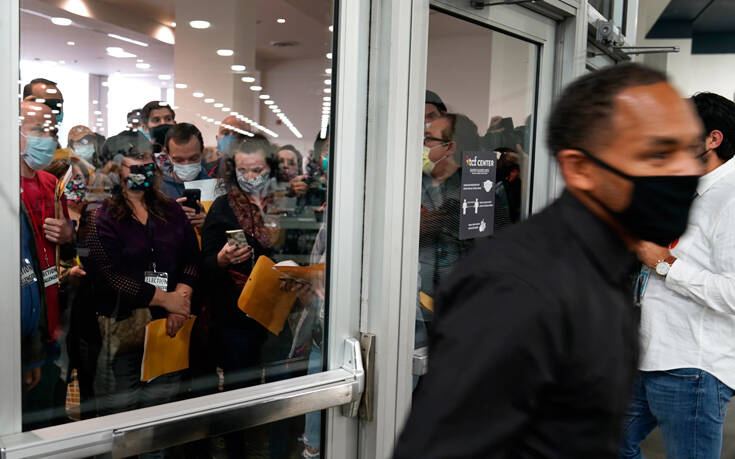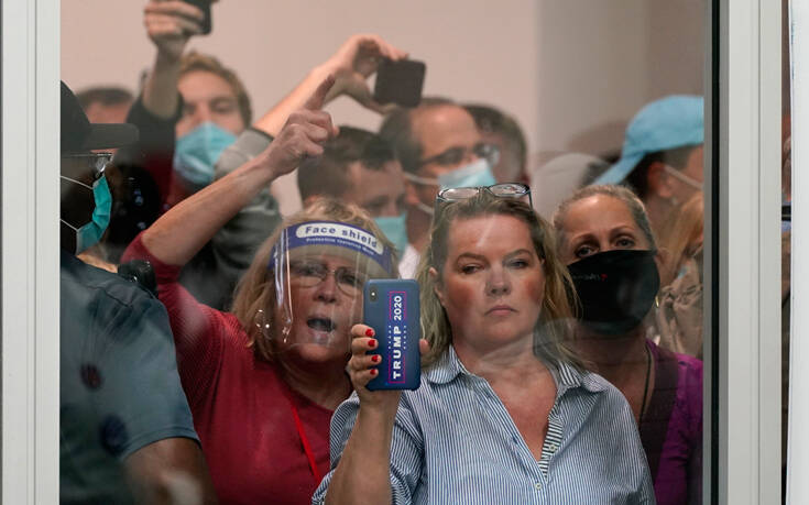 Το κέντρο καταμέτρησης ασφάλισε παράθυρα και πόρτες, με την καταμέτρηση να εξελίσσεται, καθώς οι οπαδοί του Τραμπ κοπανούσαν τα τζάμια θέλοντας να σταματήσουν την καταμέτρηση των επιστολικών ψήφων.