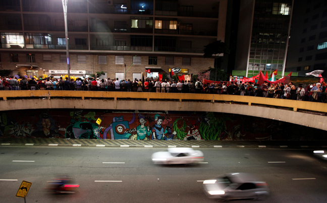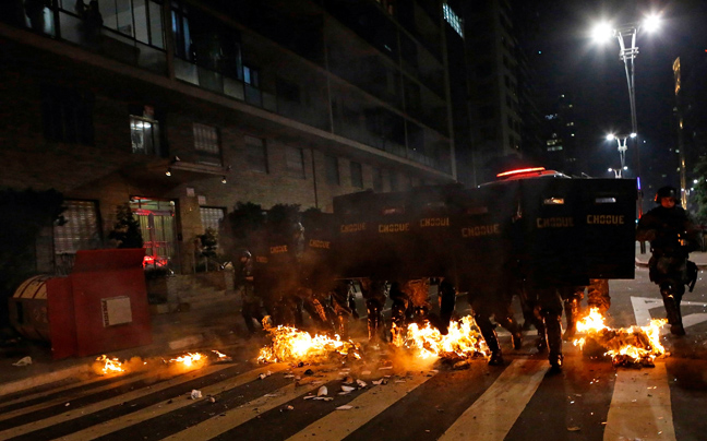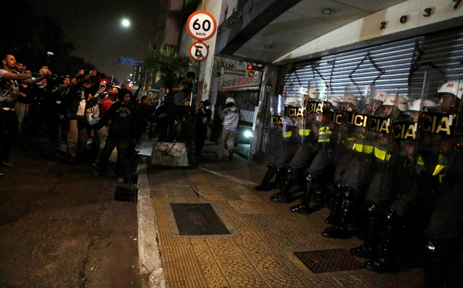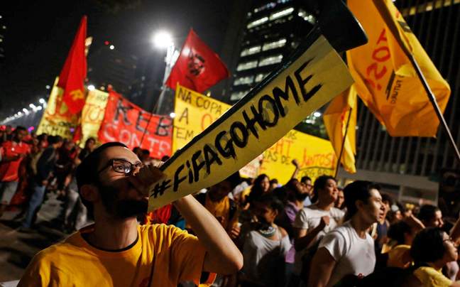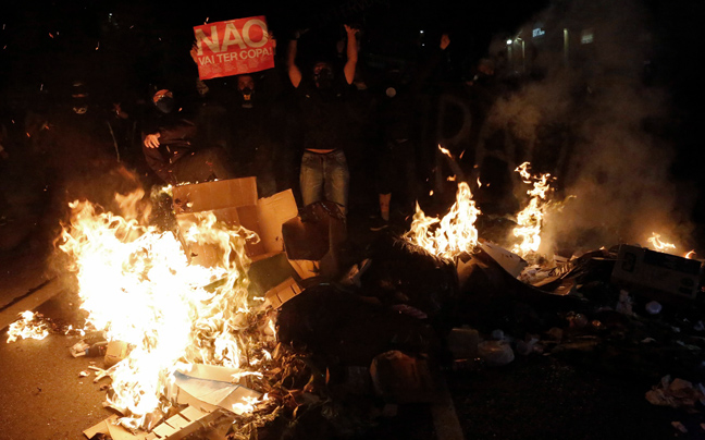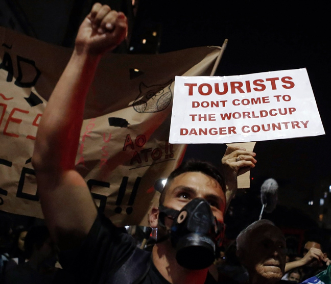 Οι διαδηλωτές εκτόξευαν πέτρες ενώ άλλοι έβαλαν φωτιά σε λάστιχα και έστησαν οδοφράγματα εκφράζοντας την οργή τους για το γεγονός πως δισεκατομμύρια δολάρια ξοδεύονται για την αθλητική διοργάνωση του επόμενου μήνα, αντί να δοθούν για κοινωνικά προγράμματα και στέγαση.