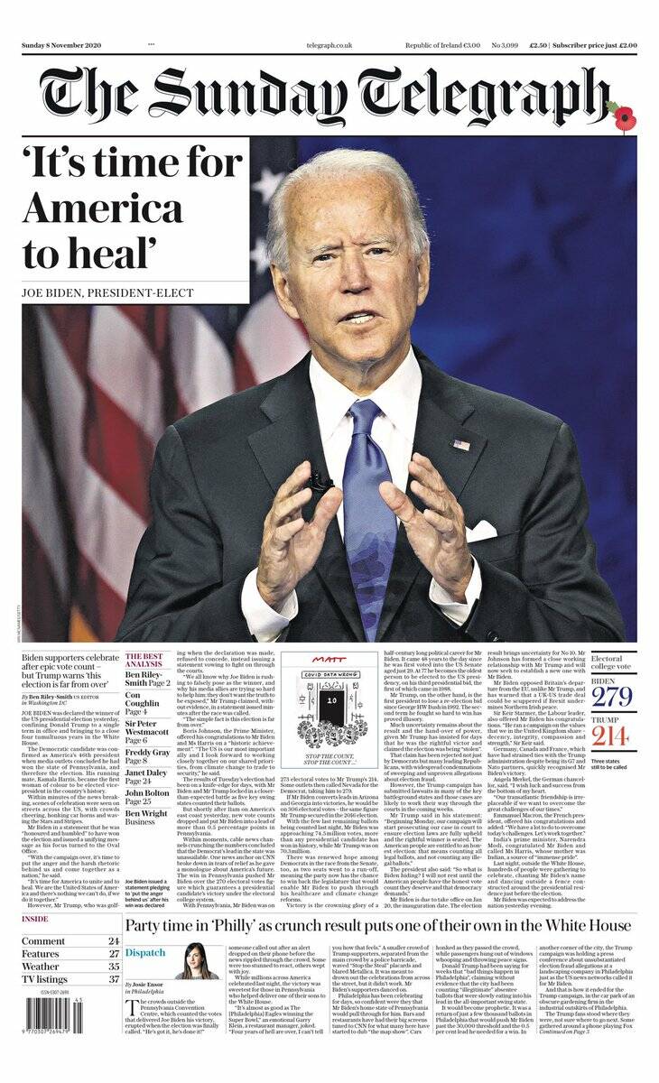 Η Sunday Telegraph μετέφερε τα λόγια του Μπάιντεν: «Έφτασε η ώρα η Αμερική να θεραπευτεί».