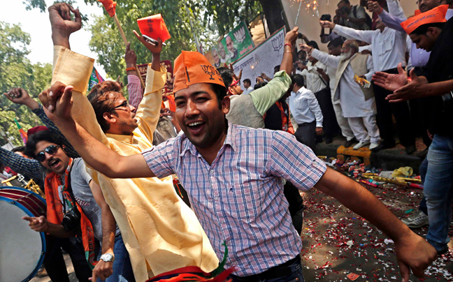 Σε ξέφρενους πανηγυρισμούς ξέσπασαν οι υποστηρικτές του κόμματος Bharatiya Janata Party (BJP) στην Ινδία στο άκουσμα πως τα πρώτα αποτελέσματα από τις εκλογές που διεξάγονται εδώ και εβδομάδες στη χώρα φέρνουν το κόμμα στην πρώτη θέση και τον ηγέτη του, Ναρέντρα Μόντι, στην πρωθυπουργία.