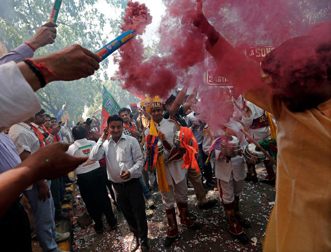 Σύμφωνα με το Reuters, το BJP οδεύει για τη μεγαλύτερη νίκη που έχει δει η χώρα την τελευταία 30ετία και οι ψηφοφόροι του δεν έχασαν την ευκαιρία να γιορτάσουν όπως πρέπει τα καλά νέα.