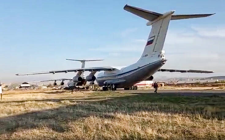 Τρία ρωσικά στρατιωτικά μεταγωγικά τύπου IL-76, που μετέφεραν περισσότερους από 80 Ρώσους στρατιώτες της ειρηνευτικής δύναμης, θωρακισμένα οχήματα μεταφοράς και μέσα τηλεπικοινωνιών, προσγειώθηκαν σήμερα στο αεροδρόμιο Ερεμπούνι της Αρμενίας, ανακοίνωσε το ρωσικό υπουργείο Άμυνας.