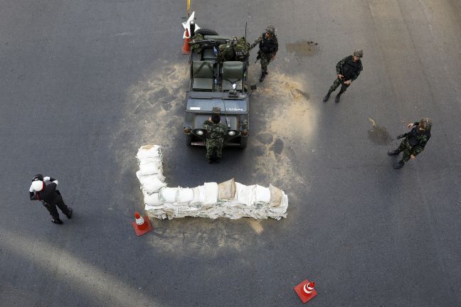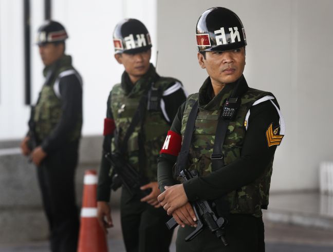 Στρατιώτες και στρατιωτικά οχήματα έλαβαν θέσεις στο κέντρο της Μπανγκόκ και κυρίως στις περιοχές των ξενοδοχείων και των τηλεοπτικών σταθμών. Δεκάδες στρατιώτες και οχήματα έχουν επίσης αναπτυχθεί σε προάστιο της πρωτεύουσας κοντά στο χώρο φιλοκυβερνητικής διαδήλωσης της οργάνωσης «Κόκκινα Πουκάμισα». Ωστόσο ο στρατός έδωσε εντολή στους διαδηλωτές, τόσο φιλοκυβερνητικούς, όσο και αντικυβερνητικούς, να παραμείνουν στους χώρους συγκέντρωσής τους.