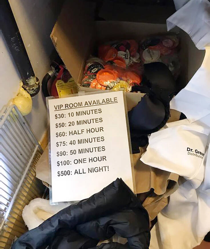 Σύμφωνα με τον σερίφη Joseph Fucito, τρία ζευγάρια πιάστηκαν στα πράσα σε ένα μικρό δωμάτιο, ενώ τα υπόλοιπα έπιναν ποτά και φλέρταραν.