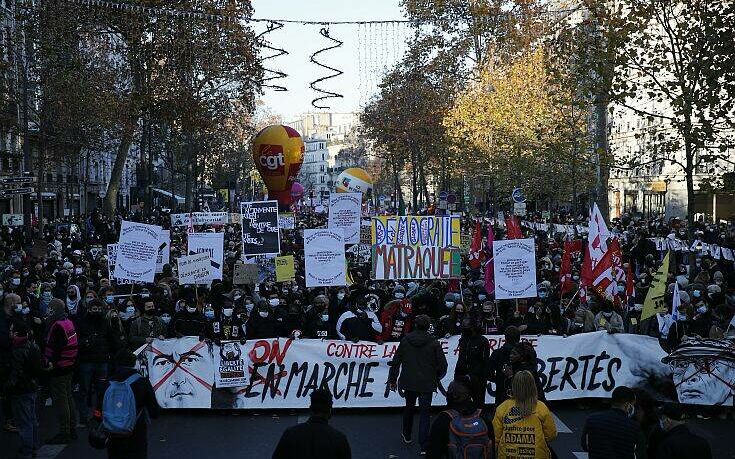 Στο Παρίσι η αστυνομία έκανε χρήση δακρυγόνων εναντίον των διαδηλωτών, σε μια κινητοποίηση κατά της αστυνομικής βίας , αφού κουκουλοφόροι εκτόξευσαν πυροτεχνήματα, έστησαν οδοφράγματα και πέταξαν πέτρες εναντίον των αστυνομικών.