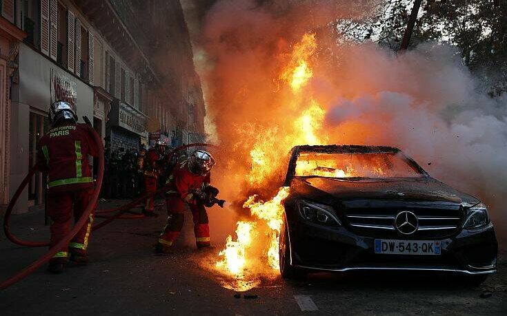 Paris’in merkezindeki yaşanan olaylarda araçlar aleve veriliyor. pic.twitter.com/QqnXOLTado