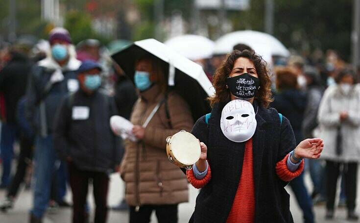 Τραγουδώντας «λιγότερες σημαίες, περισσότερες νοσοκόμες», περίπου 4.000 διαδηλωτές έκαναν πορεία στην πρωτεύουσα, την περιοχή που έχει πληγεί περισσότερο από την πανδημία. «Κάνουν διαχωρισμό. Στις ιδιωτικές εταιρείες, η υγεία είναι επιχείρηση. Στο δημόσιο, έρχονται όλοι. Αν δεν έχεις χρήματα, δεν τα βγάζεις πέρα», υποστήριξε μια βοηθός νοσοκόμας, η Λούσια Τέλβες, 65 ετών.
