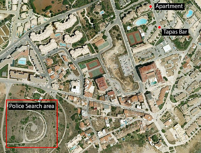 Η περιοχή όπου ερευνούν τώρα βρίσκεται περί τα 300 μέτρα από το διαμέρισμα που νοίκιαζε η οικογένειά της στο θέρετρο της Πράια ντα Λουζ του Αλγκάρβε στη νότια Πορτογαλία. Εκεί όπου εθεάθη ένας άνδρας να κρατά αγκαλιά ένα μικρό κοριτσάκι τη νύχτα της απαγωγής της Μαντλίν, τον Μάιο του 2007.