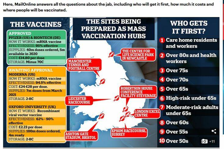 Η Μικτή Επιτροπή Εμβολιασμών και Ανοσοποίησης (JCVI) γνωστοποίησε την λίστα με τα άτομα που θα εμβολιαστούν στην πρώτη φάση.