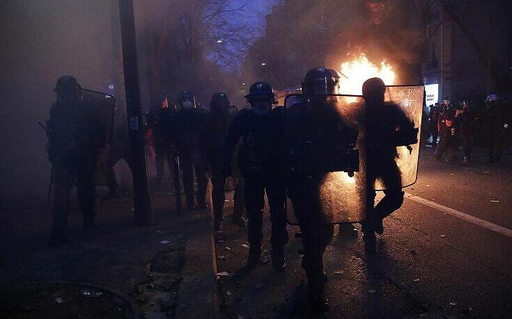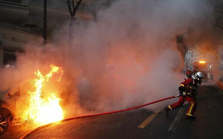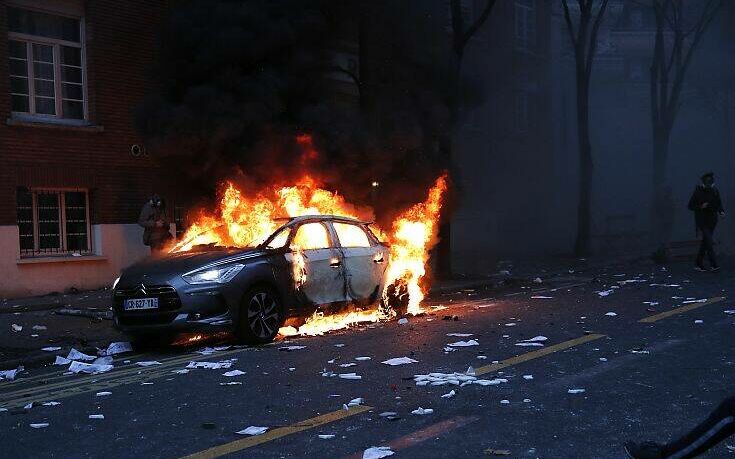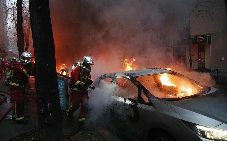 Αυτοκίνητα πυρπολήθηκαν και αρκετές βιτρίνες καταστημάτων καταστράφηκαν, στην αρχή της διαδήλωσης, σύμφωνα με τις εικόνες που μετέδωσε η γαλλική τηλεόραση. Ένα φορτηγό διακρινόταν την ώρα που καιγόταν σε έναν δρόμο, ένα πυκνό σύννεφο μαύρου καπνού σκέπαζε τον ουρανό σε εκείνο το σημείο.