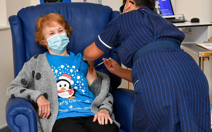 Ιστορικές στιγμές εκτυλίχθηκαν την Τρίτη (08/12) στη Μεγάλη Βρετανία, όπου άρχισαν οι πρώτοι εμβολιασμοί κατά του νέου κορονοϊού για πρώτη φορά εκτός κλινικών δοκιμών. Η 90χρονη Μάργκαρετ Κίναν έγινε ο πρώτος άνθρωπος στον κόσμο που λαμβάνει το εμβόλιο των Pfizer/BioNtech εκτός του πλαισίου των κλινικών δοκιμών.