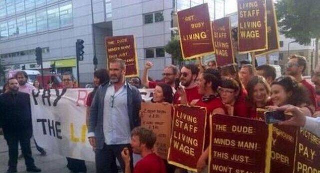 Οι εργαζόμενοι σε γνωστή αλυσίδα κινηματογράφων είχαν συγκεντρωθεί προκειμένου να διαμαρτυρηθούν για τους χαμηλούς μισθούς τους ενώ στο ίδιο σημείο είχε προγραμματιστεί συνέντευξη Τύπου από τον πρώην γάλλο ποδοσφαιριστή που προωθεί ένα ντοκιμαντέρ με θέμα οικονομικές ατασθαλίες στο Μουντιάλ της Βραζιλίας.