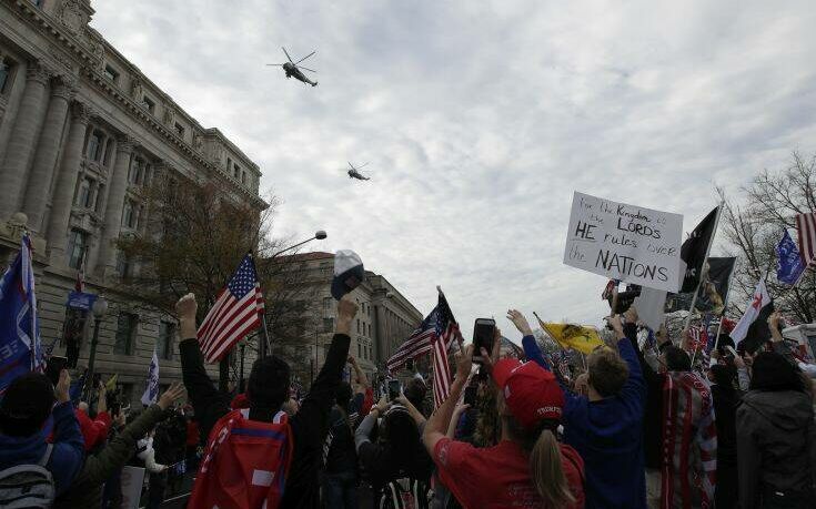 «Γουάου! Χιλιάδες άνθρωποι συγκεντρώνονται στην Ουάσιγκτον για να εμποδίσουν να μας κλέψουν τις εκλογές», διαπίστωνε με ικανοποίηση στον λογαριασμό του στο Twitter χθες ο Τραμπ, προτού το ελικόπτερό του πετάξει πάνω από το πλήθος που τραγούδαγε τον εθνικό ύμνο καθώς περνούσε.