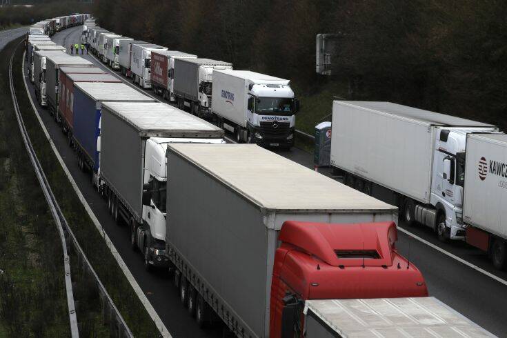 Εκατοντάδες φορτηγά σχηματίζουν μια ατελείωτη ουρά στη νότια Αγγλία, μετά το κλείσιμο των συνόρων. Πολλοί οδηγοί έχουν αποκλειστεί στο Ντόβερ και στους δρόμους που οδηγούν μέχρι εκεί για μέρες και τρώνε ό,τι αποθέματα είχαν μαζί τους.