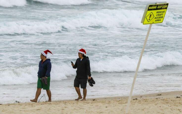Ο βροχερός καιρός και ο κορονοϊός κράτησαν τον κόσμο μακριά από τη διάσημη παραλία Μποντάι Μπιτς, παραδοσιακό χριστουγεννιάτικο προορισμό για χιλιάδες ανθρώπους κάθε χρόνο.